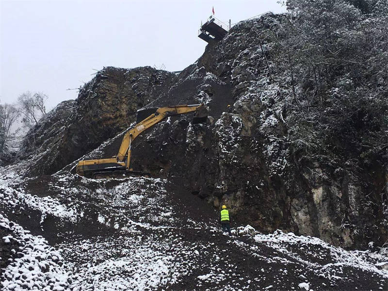 目前,廠區(qū)共8輛車在運行施工,主要用施工材料運輸,啟動3臺挖機進行礦山防護網安裝,初步完成安裝礦山防護網的前期準備工作。2月15日,舉行復工儀式,天全縣相關部門對項目進行復工資料驗收檢查,已具備開工條件。丹石公司員工正迎著風雪在大山上加緊施工,確保魚泉獅子山礦山開采項目能夠盡快完工。