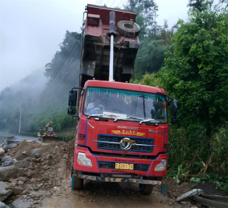 8月16日,受強降雨影響,國道351線寶興段3037公里+600米處(小地名:劍鋒電子廠)路基懸空,路面塌陷,道路中斷,情況十分緊急。 興寶公司接到寶興縣政府搶險指令后,立即啟動應急預案,執(zhí)行董事彭清翔第一時間趕赴現場,迅速組織12人的搶險突擊隊,攜帶挖掘機4臺、重型運輸卡車6臺,連夜對受損路段進行搶險施工,運輸投放巨石52車、連砂石13車,共計2700余噸。經過近10小時的連續(xù)奮戰(zhàn),成功排除險情。
