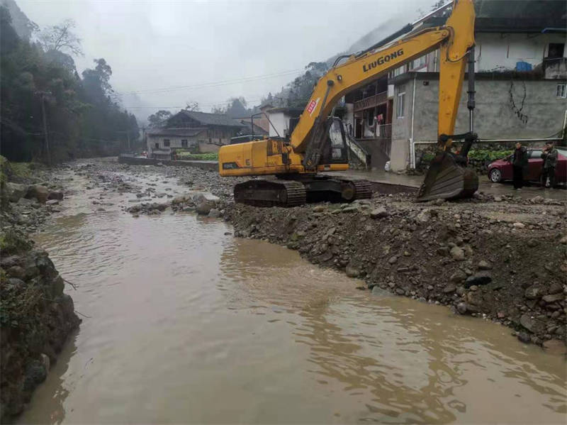 因受去年“8.11”洪災(zāi)影響,蘆山縣太平鎮(zhèn)鐘靈村棕樹坪電站段河道大量淤積體導(dǎo)致河床抬升,低洼處民房距水面不足1米。為有效解決河道淤塞影響行洪等問題,提升河道流通能力,確保河道行洪通暢和周邊群眾生命財(cái)產(chǎn)安全,在今年汛期來臨前,按照蘆山縣政府工作安排,云石公司組織人員12人、挖掘機(jī)1臺(tái)、運(yùn)渣車5臺(tái),對(duì)河道進(jìn)行應(yīng)急清淤,預(yù)計(jì)挖方量5000余方。