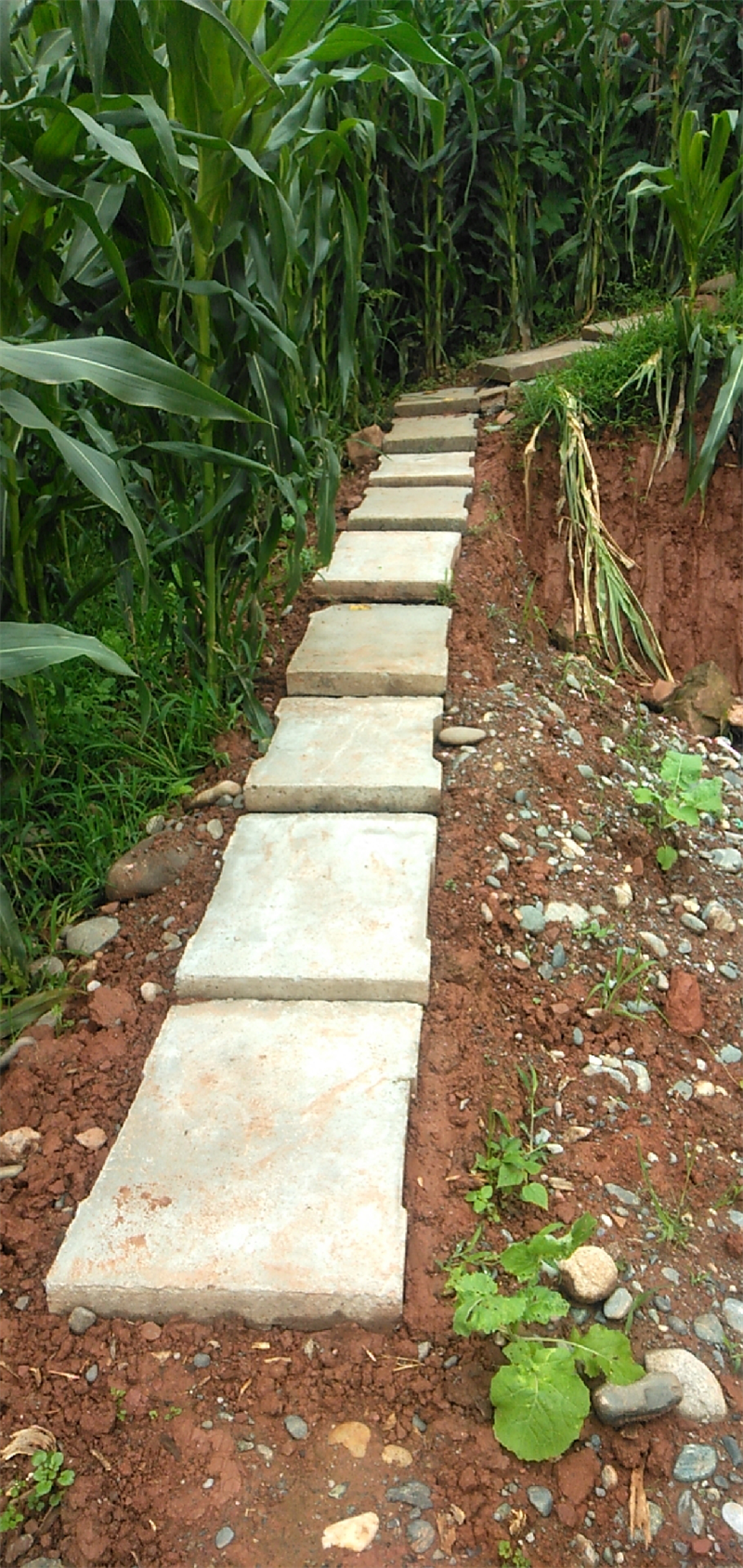 在蘆山縣佛圖山項(xiàng)目建設(shè)中,路橋公司蘆山寶興片區(qū)臨時黨支部了解到此處有一段便道坑洼不平,遇到雨季道路泥濘,嚴(yán)重影響村民的生活和生產(chǎn),且存在一定的安全隱患。為此,臨時黨支部主動提出要為群眾修補(bǔ)便道,原本只是一個帶斜角的陡坡,通過加蓋水泥預(yù)制板臺階,便道變得平整起來。考慮到出行的方便性,還將便道與通村馬路連接在一起,受到當(dāng)?shù)匕傩盏母叨荣潛P(yáng),群眾出行難題得到有效解決。