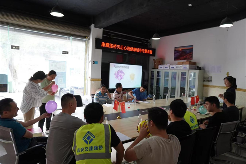 “6.1”蘆山地震發(fā)生后,路橋公司寶興項目部員工親身經歷了全過程,第一時間組織人力、物力參加人員道路搶通保通和生產自救,突發(fā)地震災害對職工造成不同程度的心理沖擊;顒又校罄蠋熍c員工們歡聚一堂,以小游戲與員工互動調整大家心理狀態(tài),圍繞員工心理健康常識、常見心理困擾及應對策略和如何緩解工作壓力、控制個人情緒、提高心理健康水平等內容,評估員工心理健康狀況,剖析員工情緒現(xiàn)狀及負面情緒產生的原因,幫助梳理解決方案。
