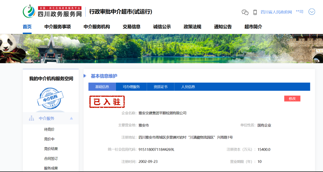 為進(jìn)一步深化“放管服”便民服務(wù),加強(qiáng)行政審批中介服務(wù)事項管理,規(guī)范中介服務(wù)行為,經(jīng)雅安市雨城區(qū)運(yùn)管所資格審核通過,近日,雅安交建集團(tuán)平順檢測有限公司正式入駐四川政務(wù)服務(wù)網(wǎng)行政審批中介超市。