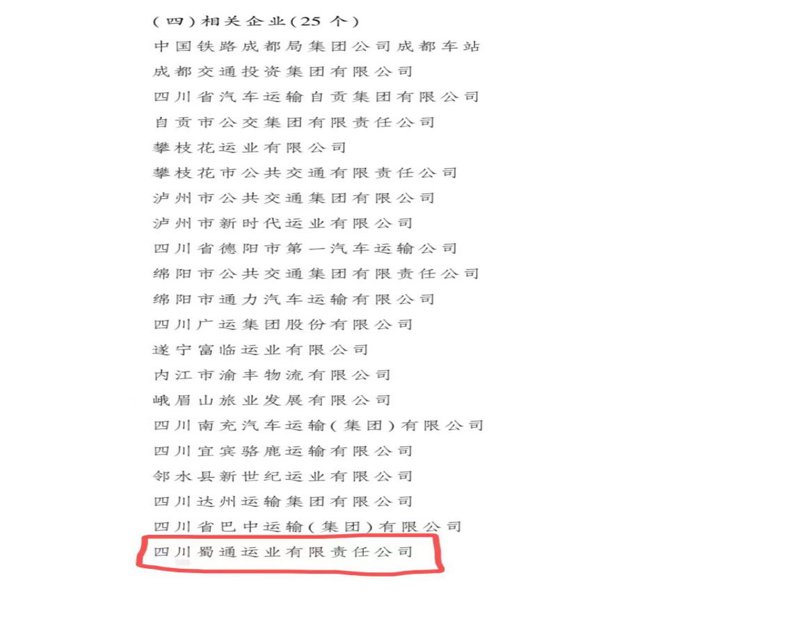 近日,四川省人民政府辦公廳印發(fā)《關(guān)于表揚2023年全省春運工作表現(xiàn)突出的集體和個人的通報》,四川蜀通運業(yè)有限公司榮獲 “2023年全省春運工作表現(xiàn)突出集體”稱號。