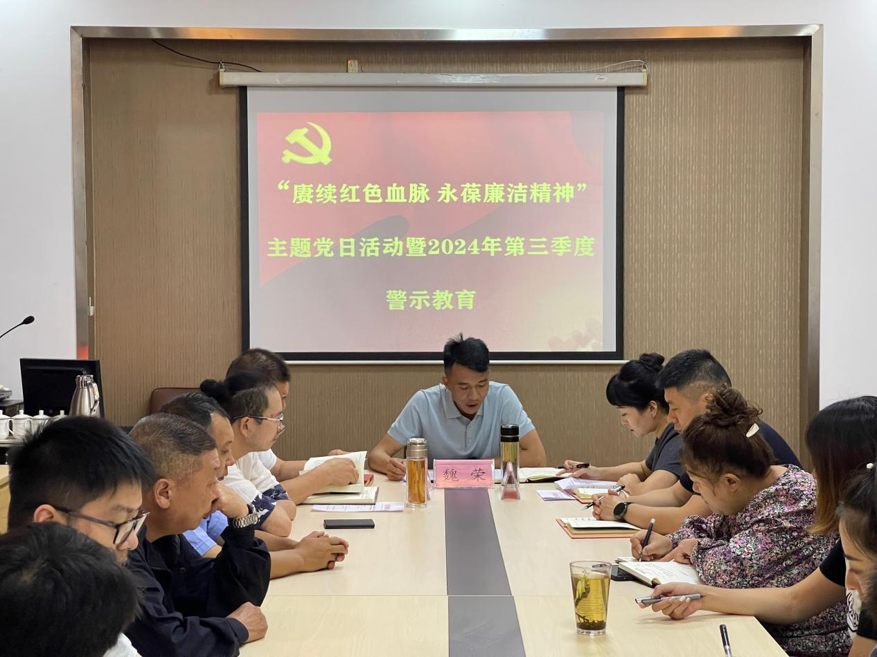 為慶祝中華人民共和國成立75周年,推動9月“全民國防教育月”宣傳活動深入進行,紀(jì)念中國人民抗日戰(zhàn)爭暨世界反法西斯戰(zhàn)爭勝利79周年,提升黨員干部國家安全意識,厚植愛國愛黨情懷,進一步加強黨員黨性教育,傳承紅色基因,弘揚革命精神,推動黨史學(xué)習(xí)教育常態(tài)化長效化。9月29日,平順公司黨支部開展“賡續(xù)紅色血脈 永葆廉潔精神”主題黨日暨2024年第三季度警示教育活動,支部書記、董事長魏榮主持活動,公司班子成員、全體黨員、預(yù)備黨員、主管及以上管理人員參加活動。