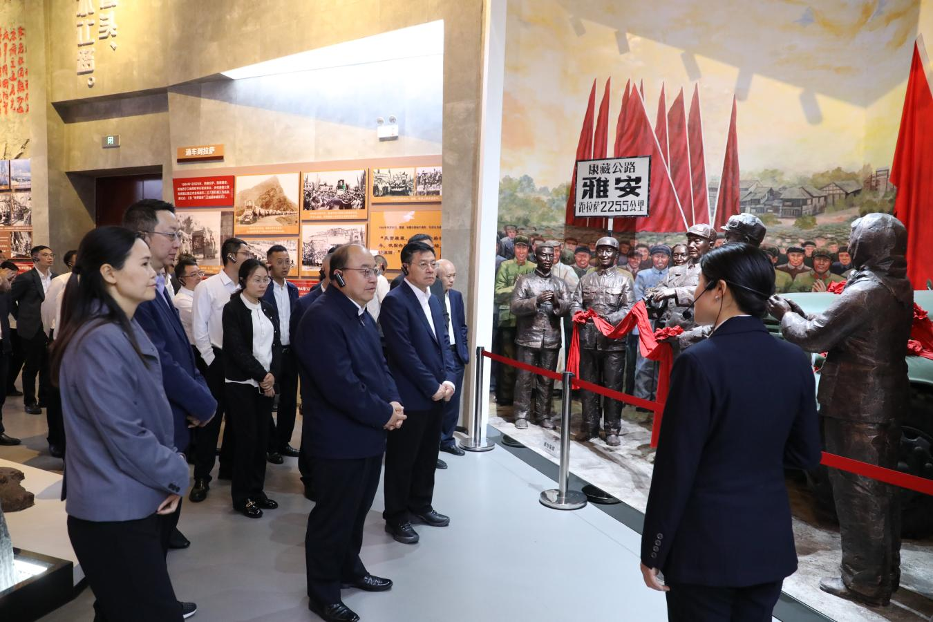 在318公路文化體驗(yàn)館,調(diào)研組一行依次深入?yún)⒂^“路無(wú)窮盡”“景無(wú)止境”“此生必駕”“行以致遠(yuǎn)”四大主題展廳,深刻領(lǐng)悟“兩路”精神的內(nèi)涵實(shí)質(zhì)。宮輝指出,“兩路”精神不僅是交通建設(shè)者們的精神豐碑,更是激勵(lì)當(dāng)代交通人不斷前行的強(qiáng)大動(dòng)力。交建集團(tuán)可在如何將該項(xiàng)目打造成為川藏線上的新亮點(diǎn),成為川藏線上體現(xiàn)“兩路”精神“一不怕苦、二不怕死,頑強(qiáng)拼搏、甘當(dāng)路石,軍民一家、民族團(tuán)結(jié)”的縮影代表,推動(dòng)交旅融合高效發(fā)展。