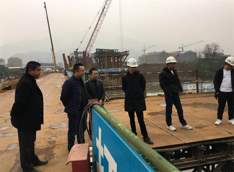 11月14日,交建集團總經(jīng)理羅倫全一行到多營青衣江大橋項目現(xiàn)場檢查建設進度情況。羅倫全首先聽取了現(xiàn)場管理人員匯報情況,隨后實地檢查了大橋的引橋和主橋建設情況。針對引橋現(xiàn)澆梁建設情況,羅倫全要求施工單位要加快現(xiàn)場建設,做好模板綁扎和混凝土供應工作;針對主橋建設情況,羅倫全要求施工單位要想方設法克服困難,做好承臺的澆筑工作。