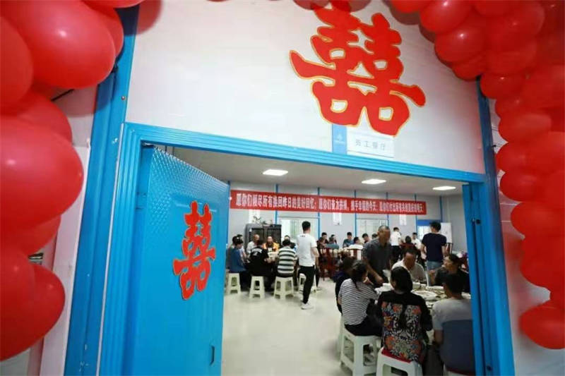 張萬清在致辭中表示,4對新人5月20日領(lǐng)證,5月21日舉行婚禮。這不僅展現(xiàn)了現(xiàn)在年輕夫妻一起吃苦、共同奮斗的優(yōu)秀品格和追求幸福的急迫心情,也展現(xiàn)出我們項(xiàng)目部的高效率。雖然今天的婚禮殿堂很簡陋,沒有婚紗,也沒有禮服,但是有我們所有工友的美好祝福。最后祝愿4對新人百年好合、永結(jié)同心,在交通集團(tuán)這個(gè)大家庭里,互相幫助、互相支持、共創(chuàng)輝煌的事業(yè)。