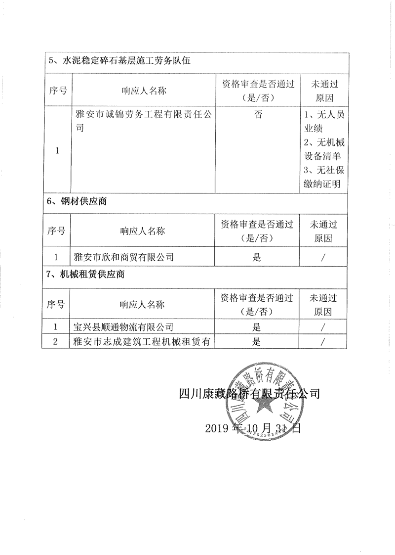 四川康藏路橋有限責(zé)任公司企業(yè)入庫比選(補錄)結(jié)果公示
