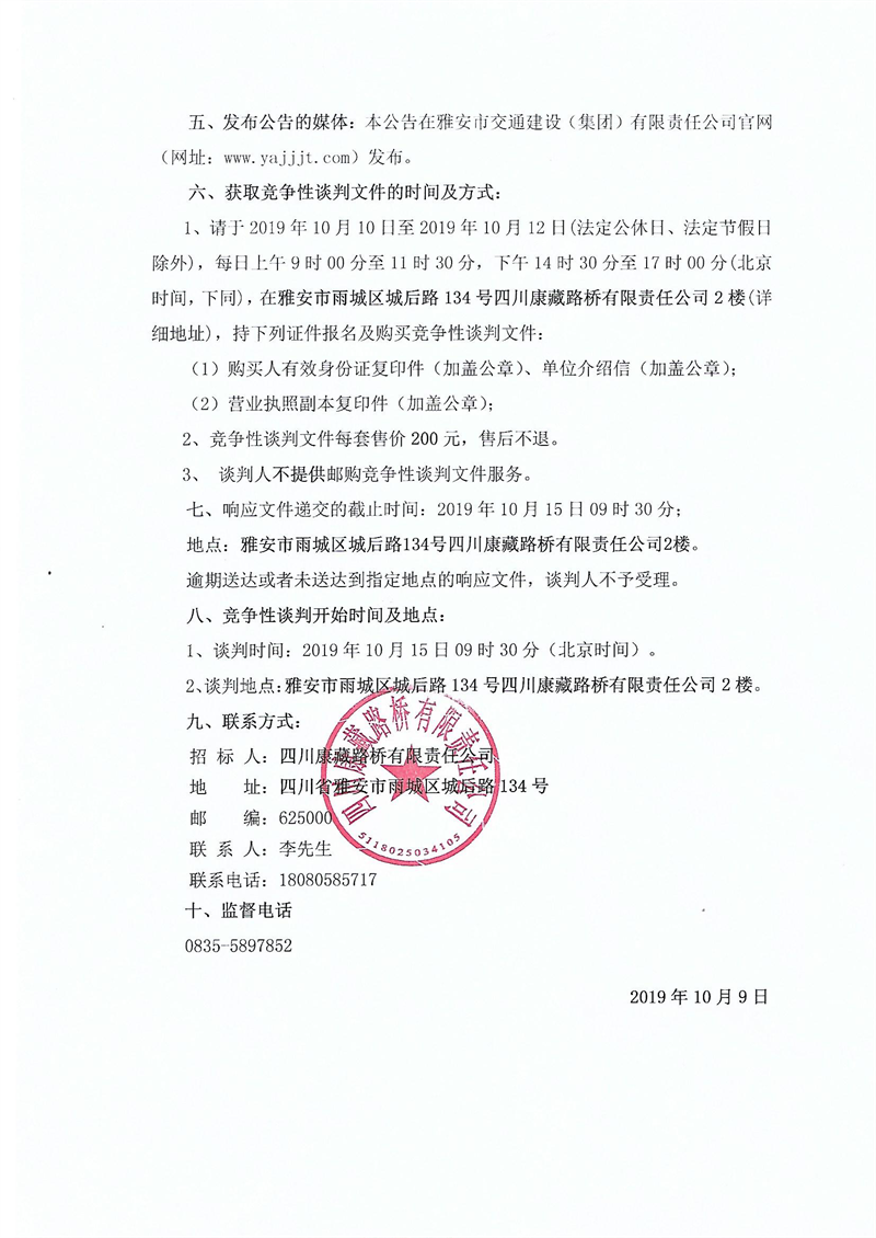 四川康藏路橋有限責(zé)任公司國(guó)道351線磽磧至夾金山路面改造工程波形護(hù)欄采購競(jìng)爭(zhēng)性談判結(jié)果公示
