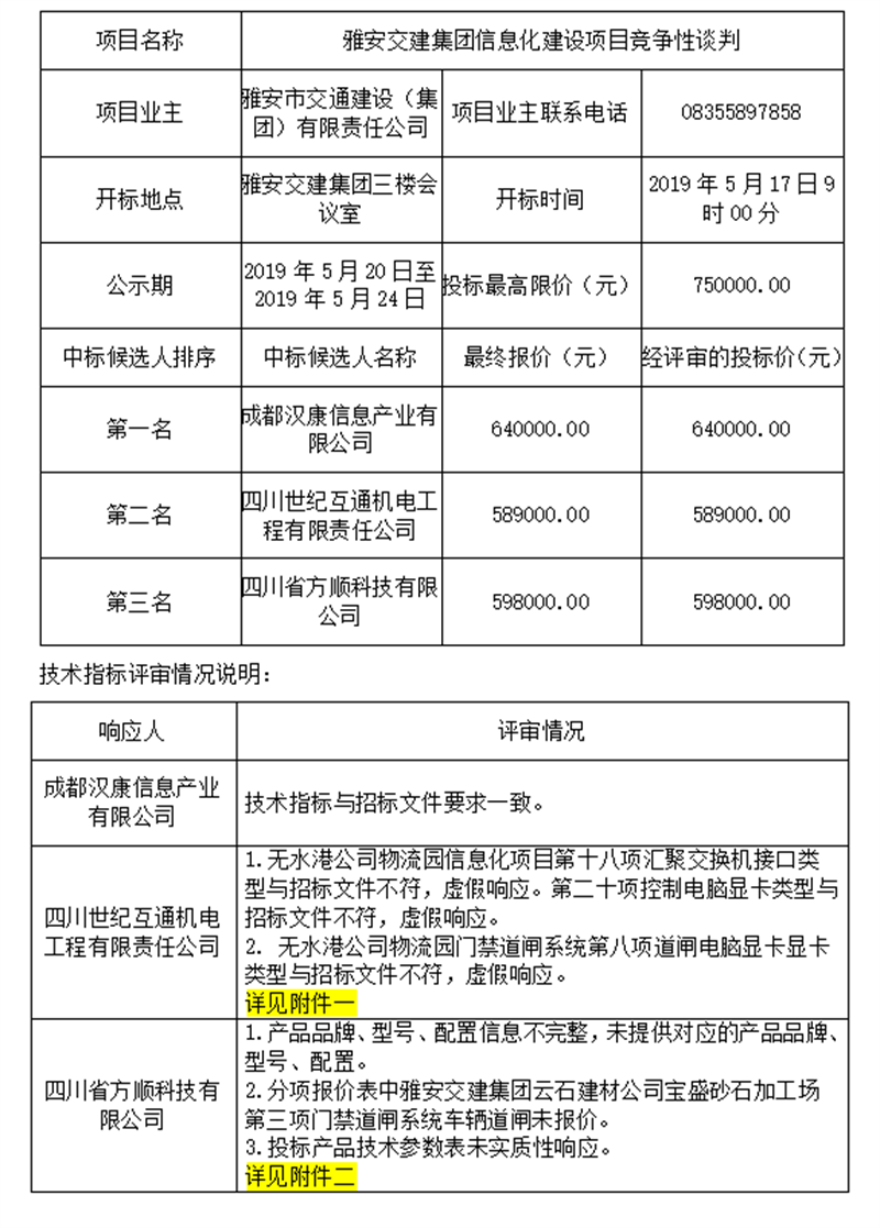 雅安交建集團信息化建設(shè)項目競爭性談判評標結(jié)果公示