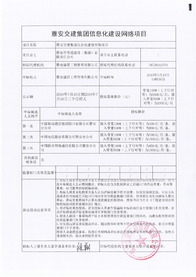 雅安交建集團信息化建設網(wǎng)絡項目競爭性談判結果公示