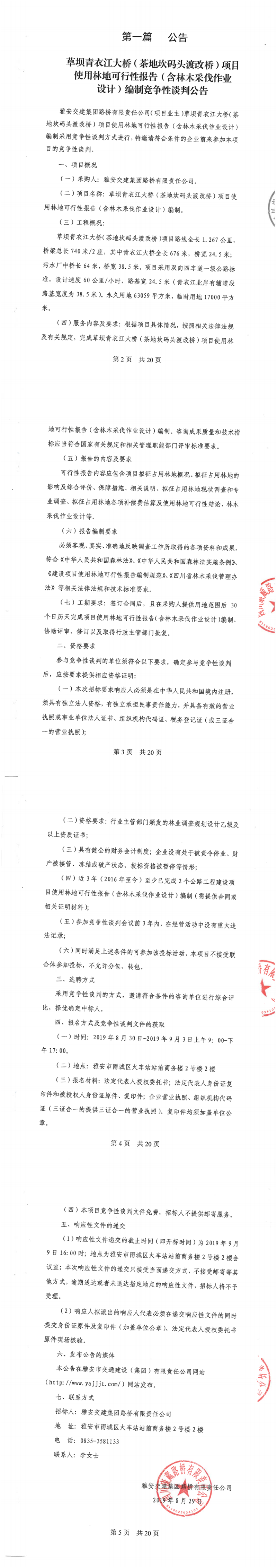 雅安交建集團路橋有限責任公司草壩青衣江大橋(茶地坎碼頭渡改橋)使用林地可行性報告(含林木采伐作業(yè)設(shè)計)編制競爭性談判公告