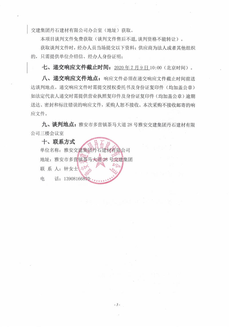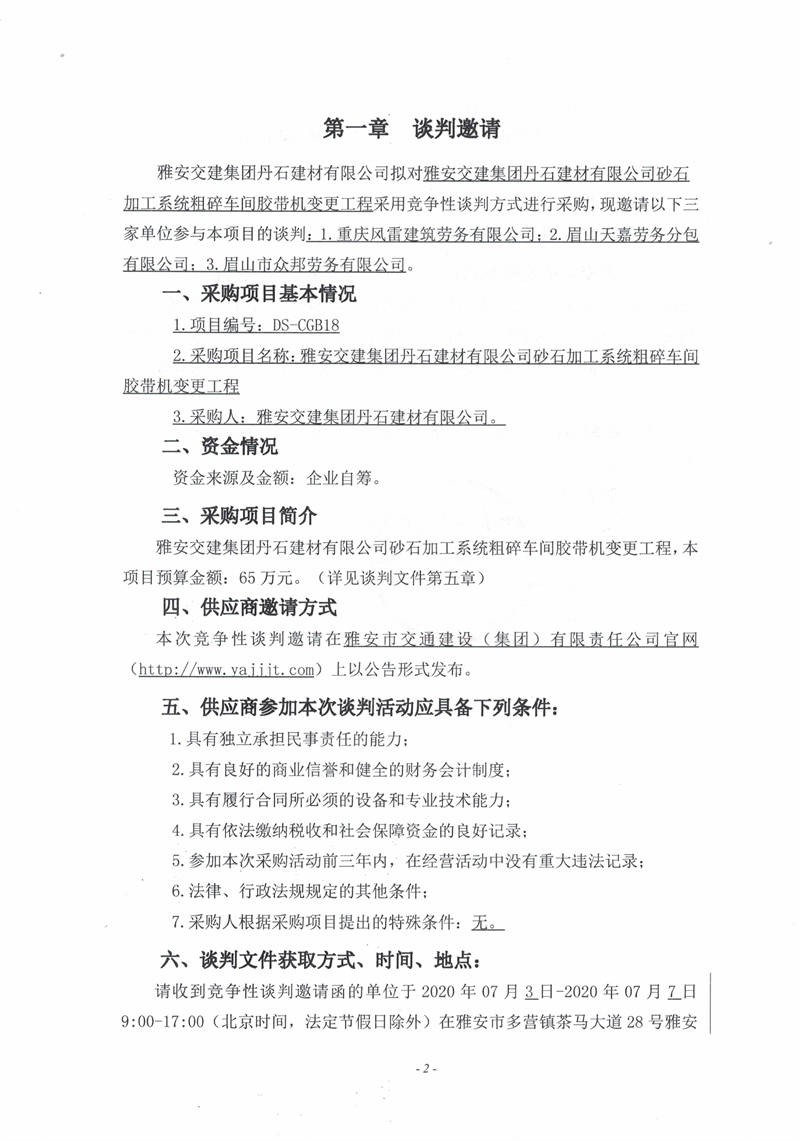 雅安交建集團(tuán)丹石建材有限公司砂石加工系統(tǒng)粗碎車間膠帶機(jī)變更工程競(jìng)爭(zhēng)性談判邀請(qǐng)公告