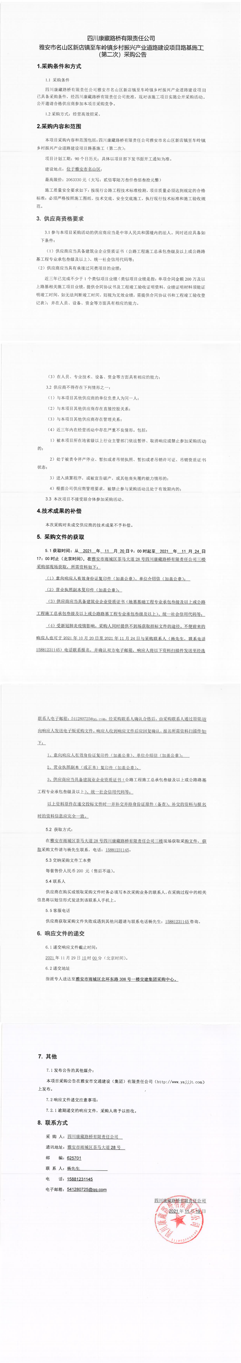 四川康藏路橋有限責任公司雨城區(qū)藏茶村至大石村森林防火通道工程路基附屬一標段(K0+000-K6+140)、二標段(K6+140至K12+838.2)施工勞務采購公告