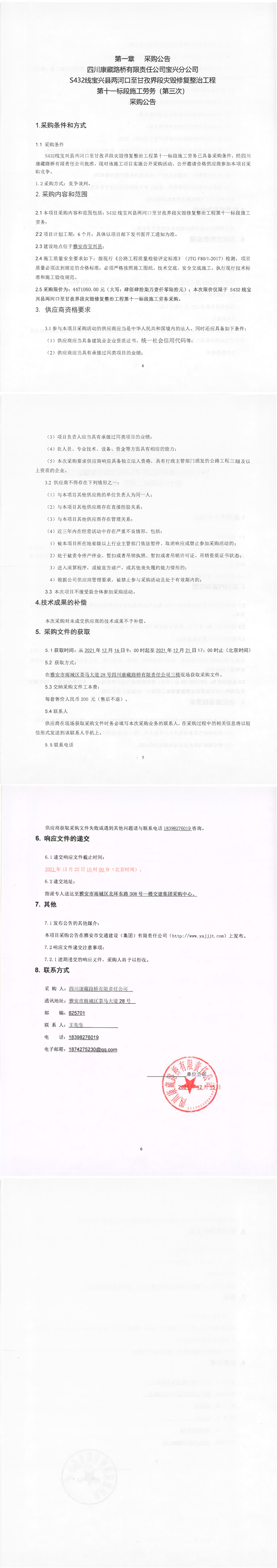 四川康藏路橋有限責任公司寶興分公司S432線寶興縣兩河口至甘孜界段災毀修復整治工程第十一標段施工勞務(wù)(第三次)采購公告