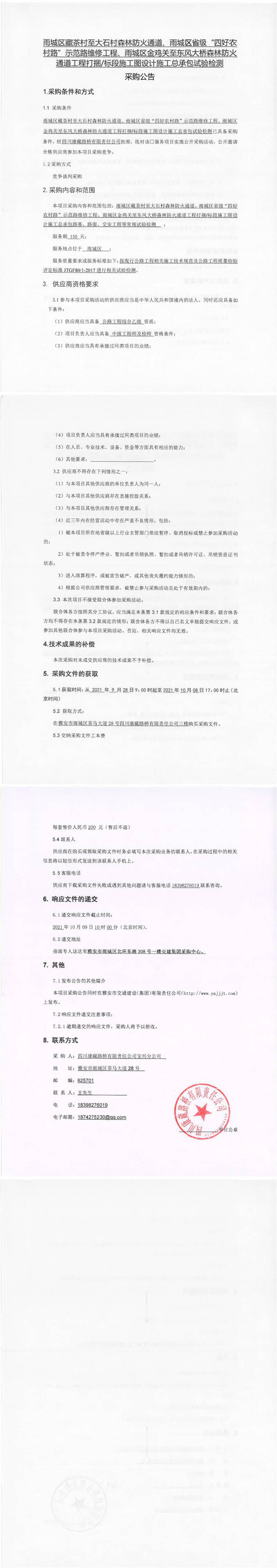 四川康藏路橋有限責(zé)任公司雨城區(qū)藏茶村至大石村森林防火通道、雨城區(qū)省級“四好農(nóng)村路”示范路維修工程、雨城區(qū)金雞關(guān)至東風(fēng)大橋森林防火通道工程打捆/標(biāo)段施工圖設(shè)計(jì)施工總承包試驗(yàn)檢測采購公告