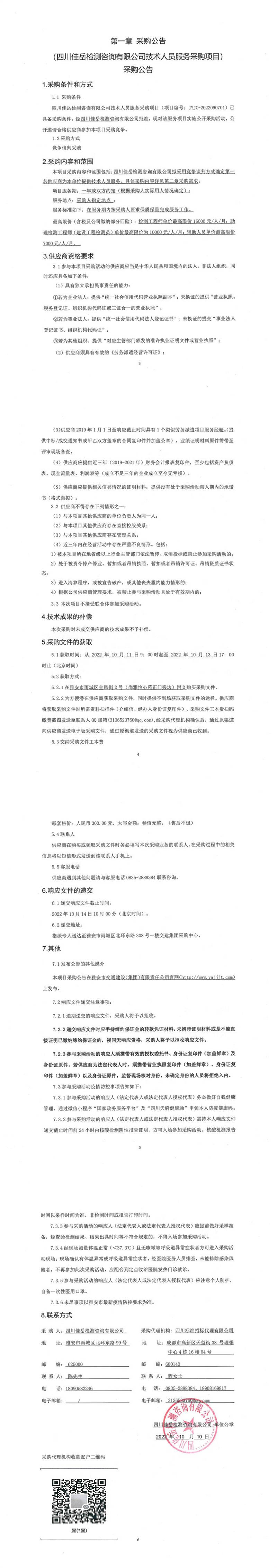 四川佳岳檢測咨詢有限公司技術(shù)人員服務(wù)采購項目采購公告