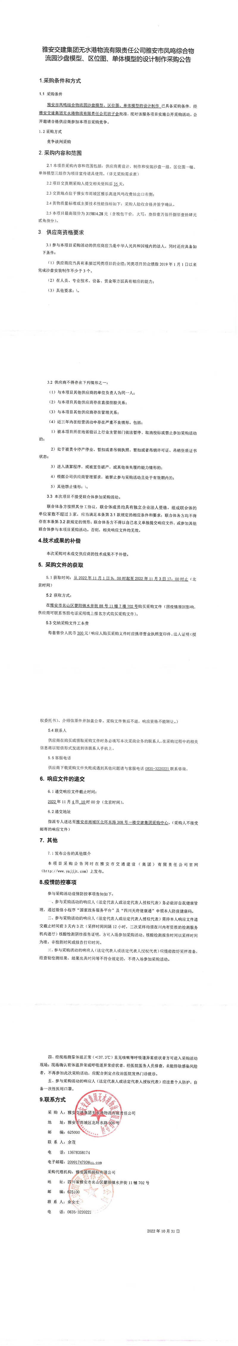 雅安交建集團無水港物流有限責(zé)任公司雅安市鳳鳴綜合物流園沙盤模型、區(qū)位圖、單體模型的設(shè)計制作采購公告