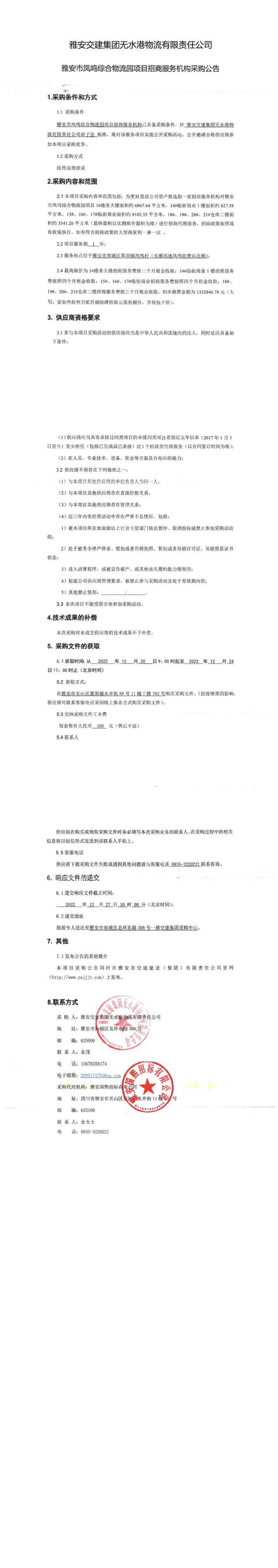 雅安交建集團(tuán)無水港物流有限責(zé)任公司雅安市鳳鳴綜合物流園項(xiàng)目招商服務(wù)機(jī)構(gòu)采購(gòu)公告