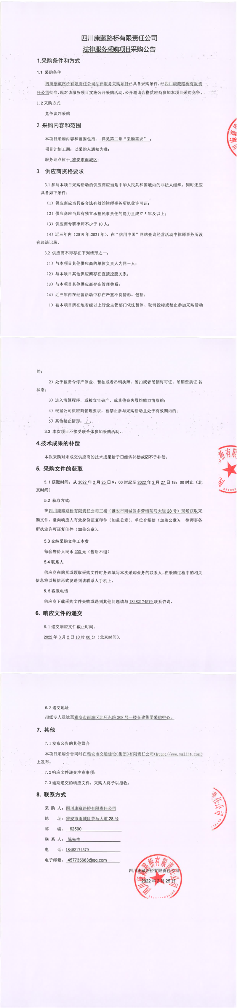 四川康藏路橋有限責(zé)任公司法律服務(wù)采購項目采購公告