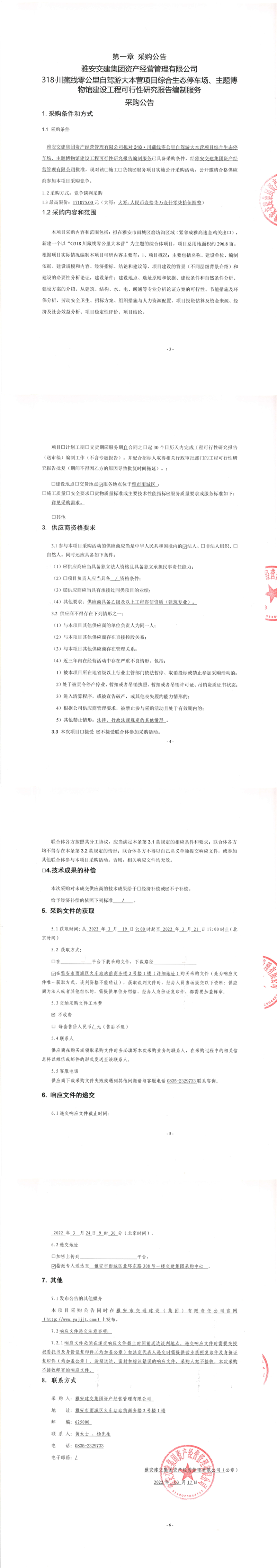 雅安交建集團(tuán)資產(chǎn)經(jīng)營管理有限公司318.川藏線零公里自駕游大本營項(xiàng)目綜合生態(tài)停車場、主題博物館建設(shè)工程可行性研究報(bào)告編制服務(wù)采購公告