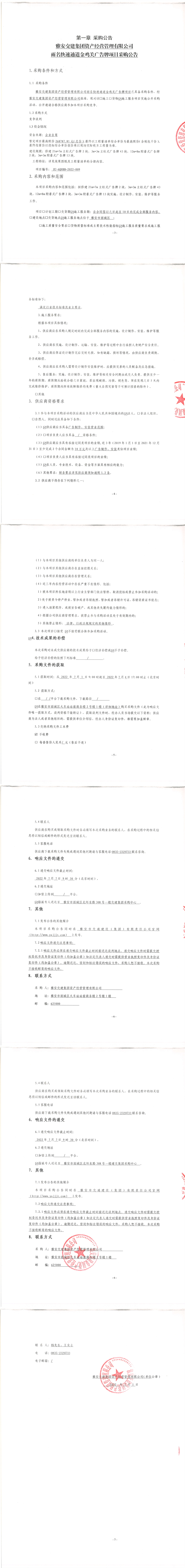雅安交建集團資產(chǎn)經(jīng)營管理有限公司雨名快速通道金雞關廣告牌項目采購公告