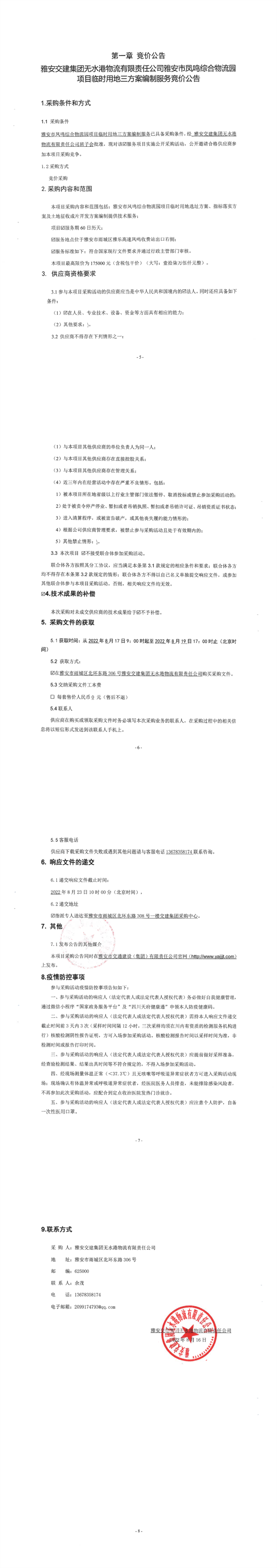 雅安交建集團(tuán)無水港物流有限責(zé)任公司雅安市鳳鳴綜合物流園項(xiàng)目臨時(shí)用地三方案編制服務(wù)競價(jià)公告