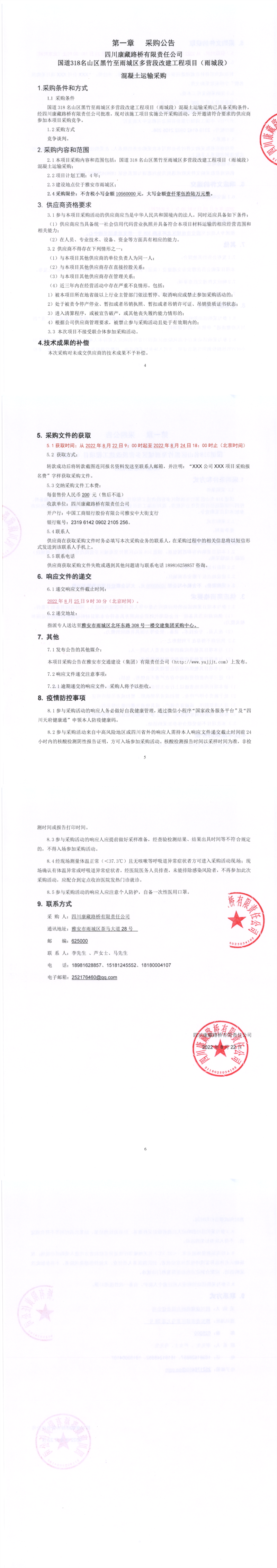 四川康藏路橋有限責任公司國道318名山區(qū)黑竹至雨城區(qū)多營段改建工程項目(雨城段)混凝土運輸采購公告