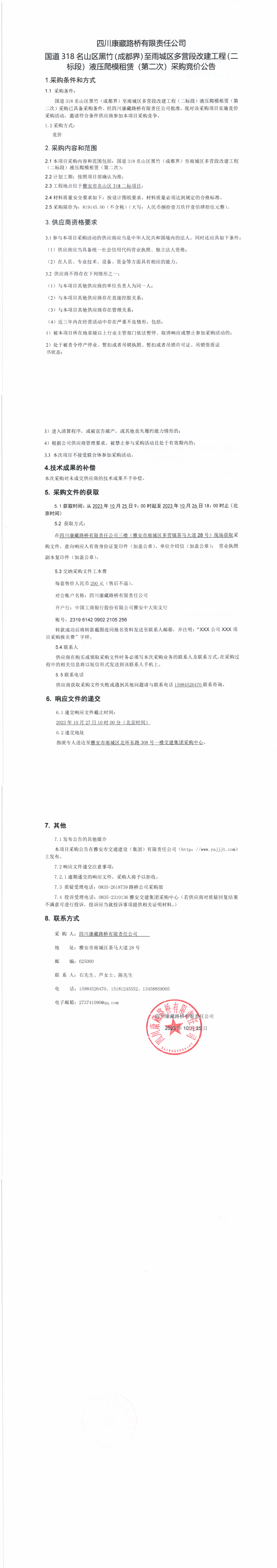 四川康藏路橋有限責(zé)任公司國道318名山區(qū)黑竹(成都界)至雨城區(qū)多營段改建工程二標段液壓爬模租賃(第二次)采購競價公告