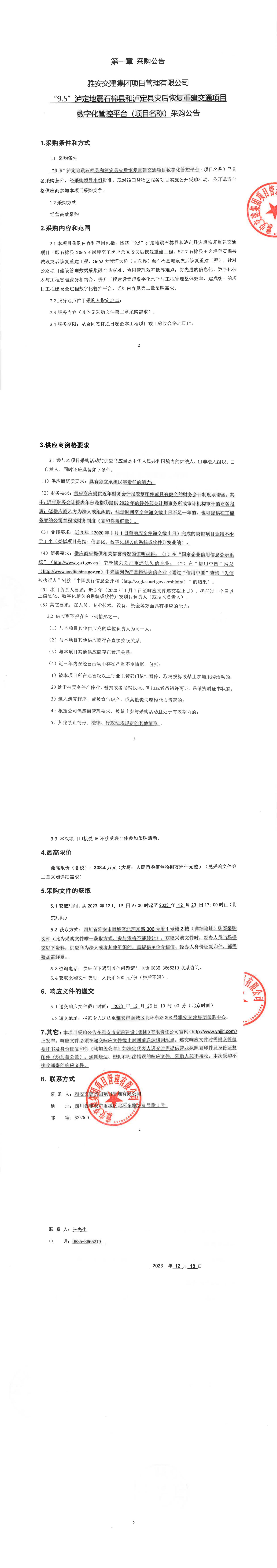 雅安交建集團(tuán)項(xiàng)目管理有限公司“9.5”瀘定地震石棉縣和瀘定縣災(zāi)后恢復(fù)重建交通項(xiàng)目數(shù)字化管控平臺(tái)(項(xiàng)目名稱(chēng))采購(gòu)公告