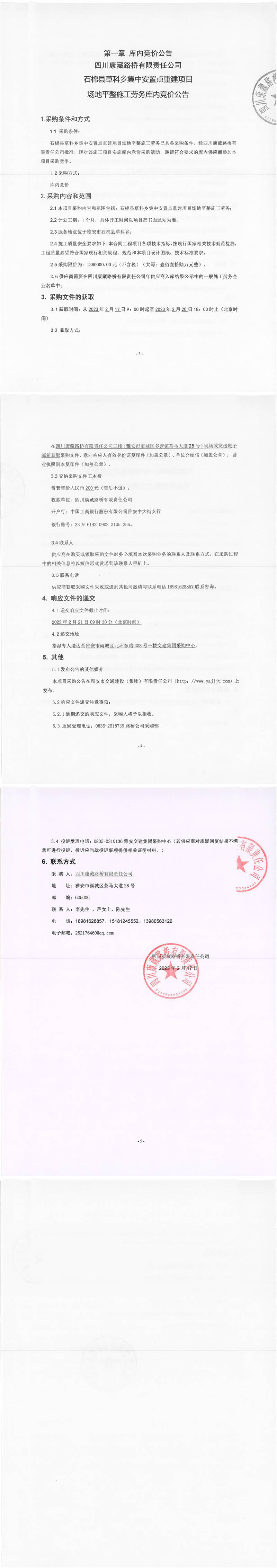 四川康藏路橋有限責任公司石棉草科鄉(xiāng)集中安置點重建項目場地平整施工勞務庫內競價公告