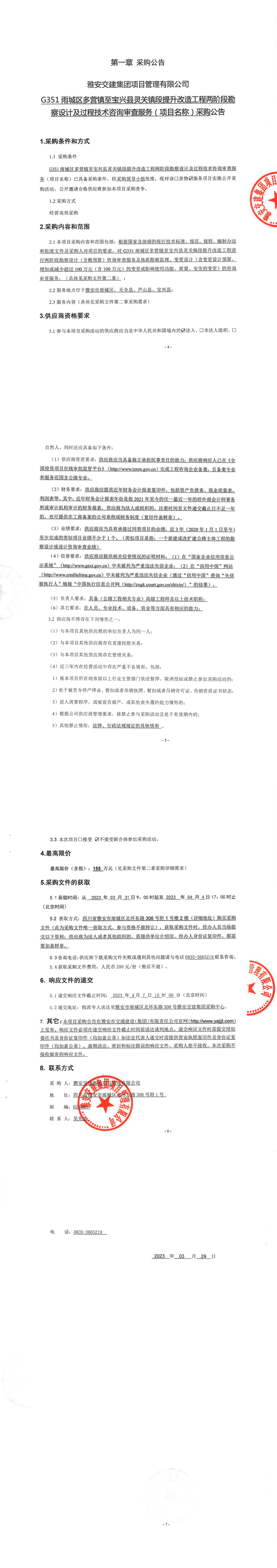 雅安交建集團項目管理有限公司G351雨城區(qū)多營鎮(zhèn)至寶興縣靈關(guān)鎮(zhèn)段提升改造工程兩階段勘察設(shè)計及過程技術(shù)咨詢審查服務(項目名稱)采購公告