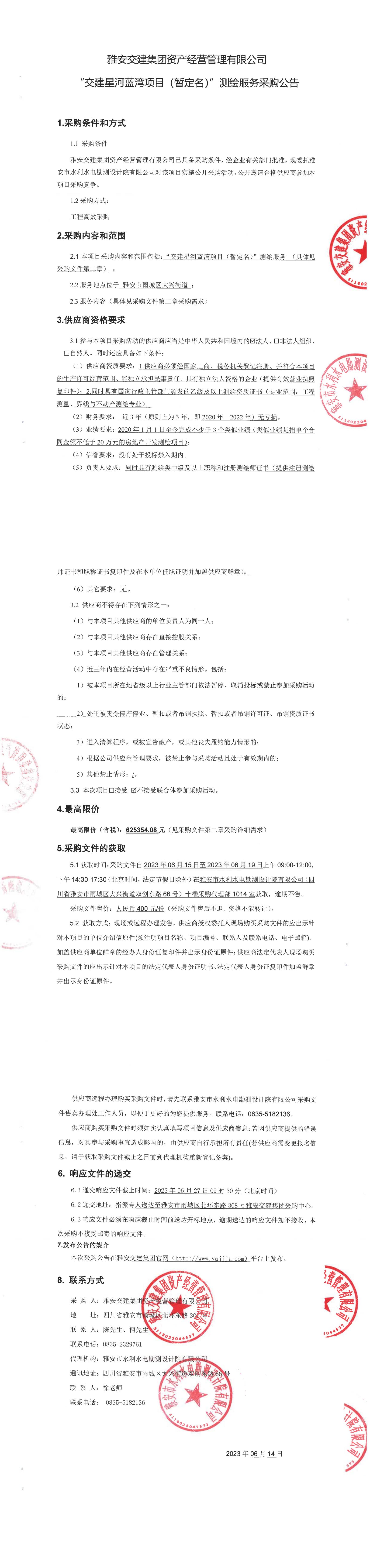 雅安交建集團資產(chǎn)經(jīng)營管理有限公司“交建星河藍灣項目(暫定名)”測繪服務(wù)采購公告