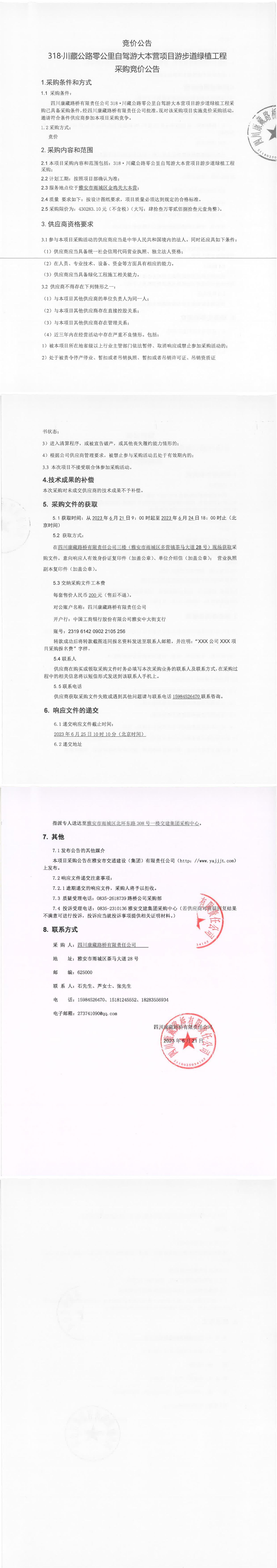 四川康藏路橋有限責(zé)任公司318·川藏公路零公里自駕游大本營項(xiàng)目游步道綠植工程采購競(jìng)價(jià)公告