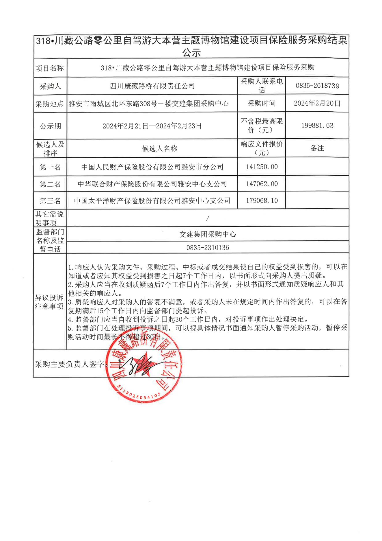 四川康藏路橋有限責(zé)任公司318•川藏公路零公里自駕游大本營主題博物館建設(shè)項(xiàng)目保險(xiǎn)服務(wù)采購結(jié)果公示