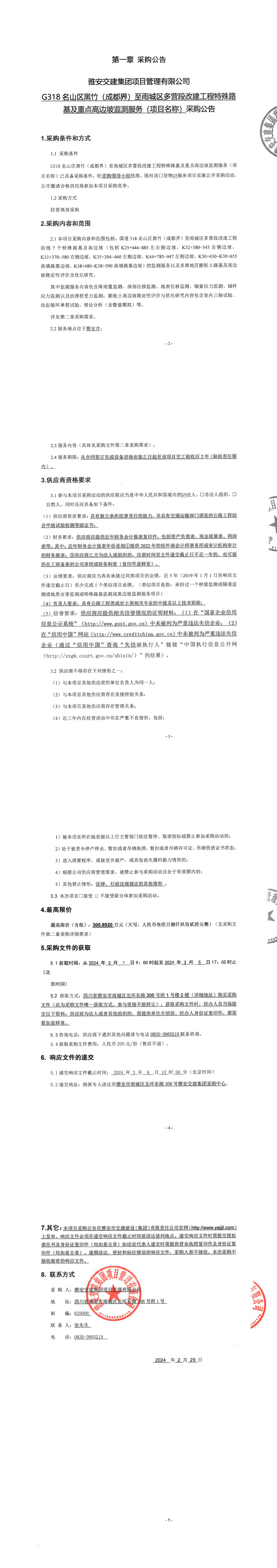 雅安交建集團項目管理有限公司國道318名山區(qū)黑竹(成都界)至雨城區(qū)多營段改造工程的特殊及重點路基高邊坡監(jiān)測服務(wù)(項目名稱)采購公告