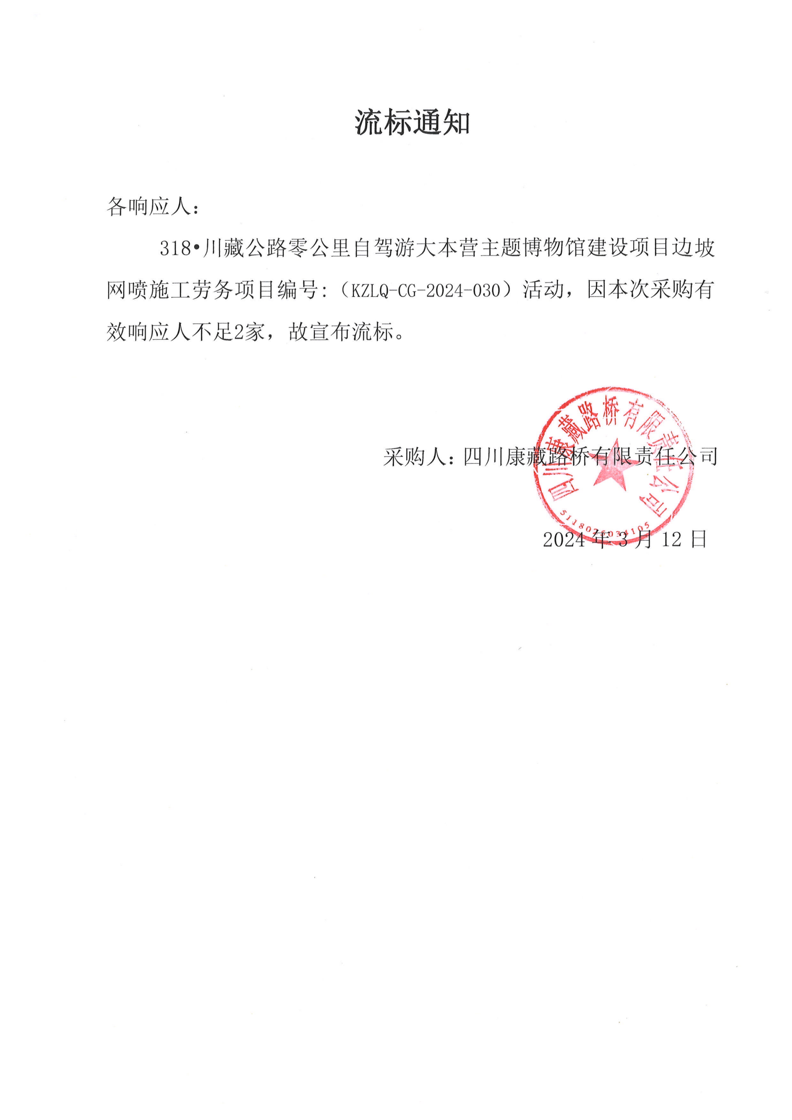 四川康藏路橋有限責任公司318·川藏公路零公里自駕游大本營主題博物館建設(shè)項目邊坡網(wǎng)噴施工勞務(wù)流標通知