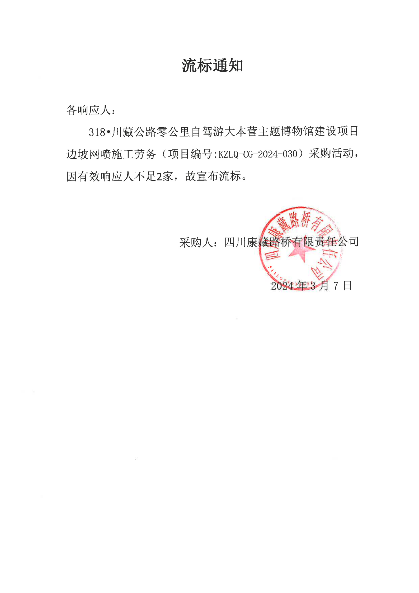 四川康藏路橋有限責(zé)任公司318·川藏公路零公里自駕游大本營主題博物館建設(shè)項目邊坡網(wǎng)噴施工勞務(wù)流標通知