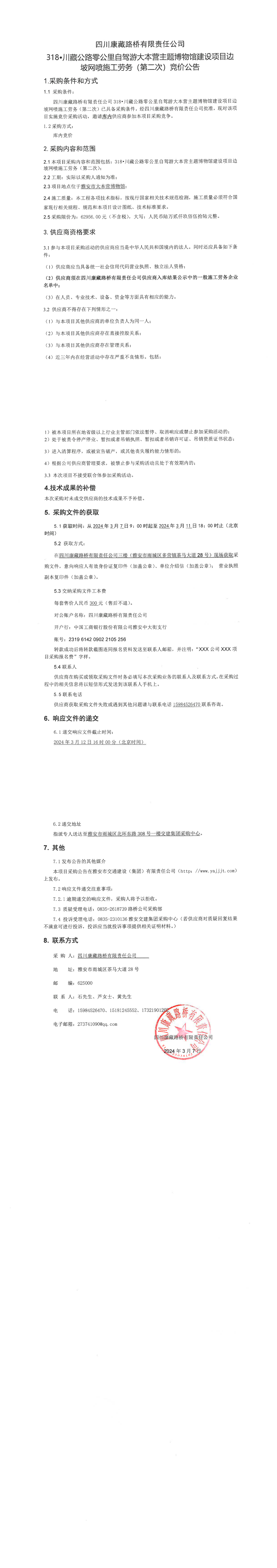 四川康藏路橋有限責任公司318·川藏公路零公里自駕游大本營主題博物館建設項目邊坡網噴施工勞務(第二次)競價公告