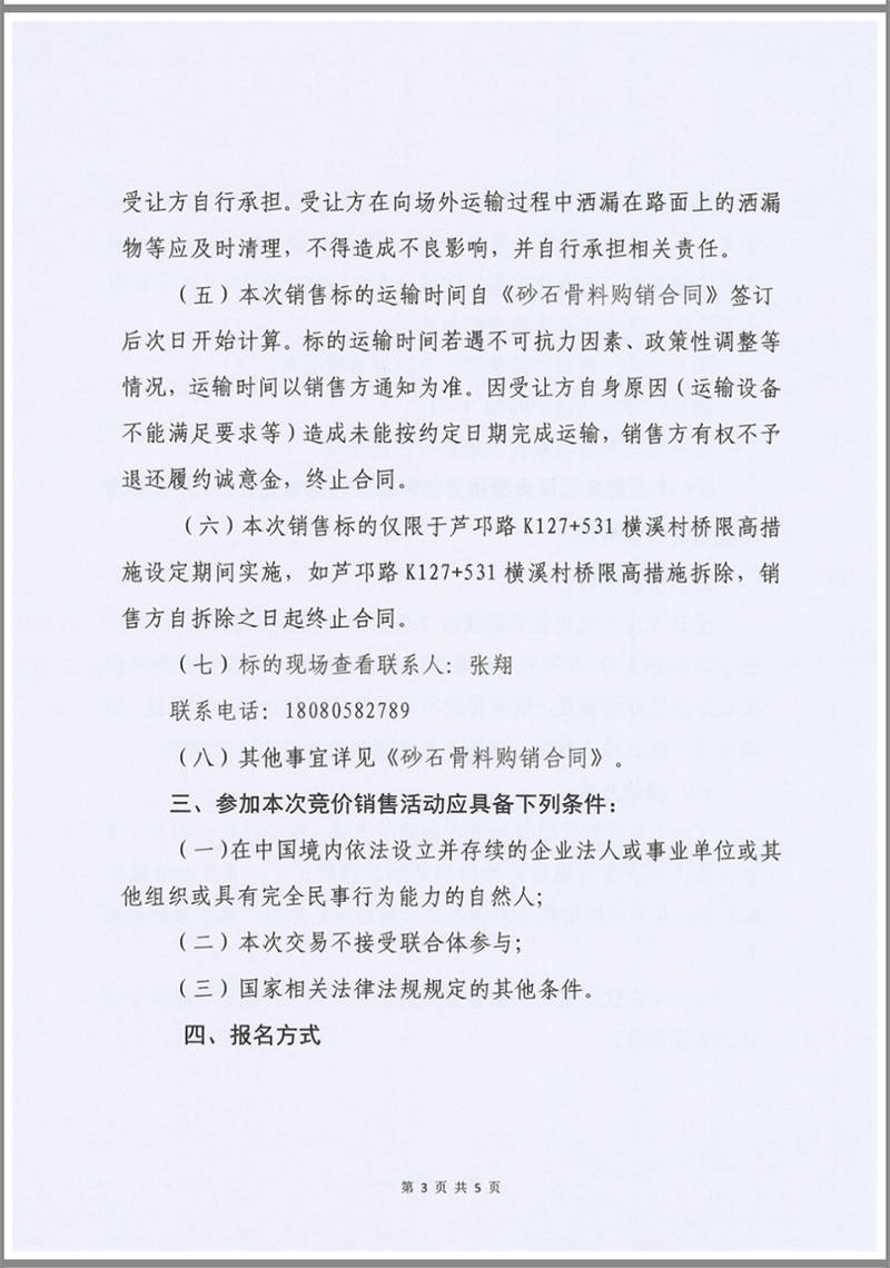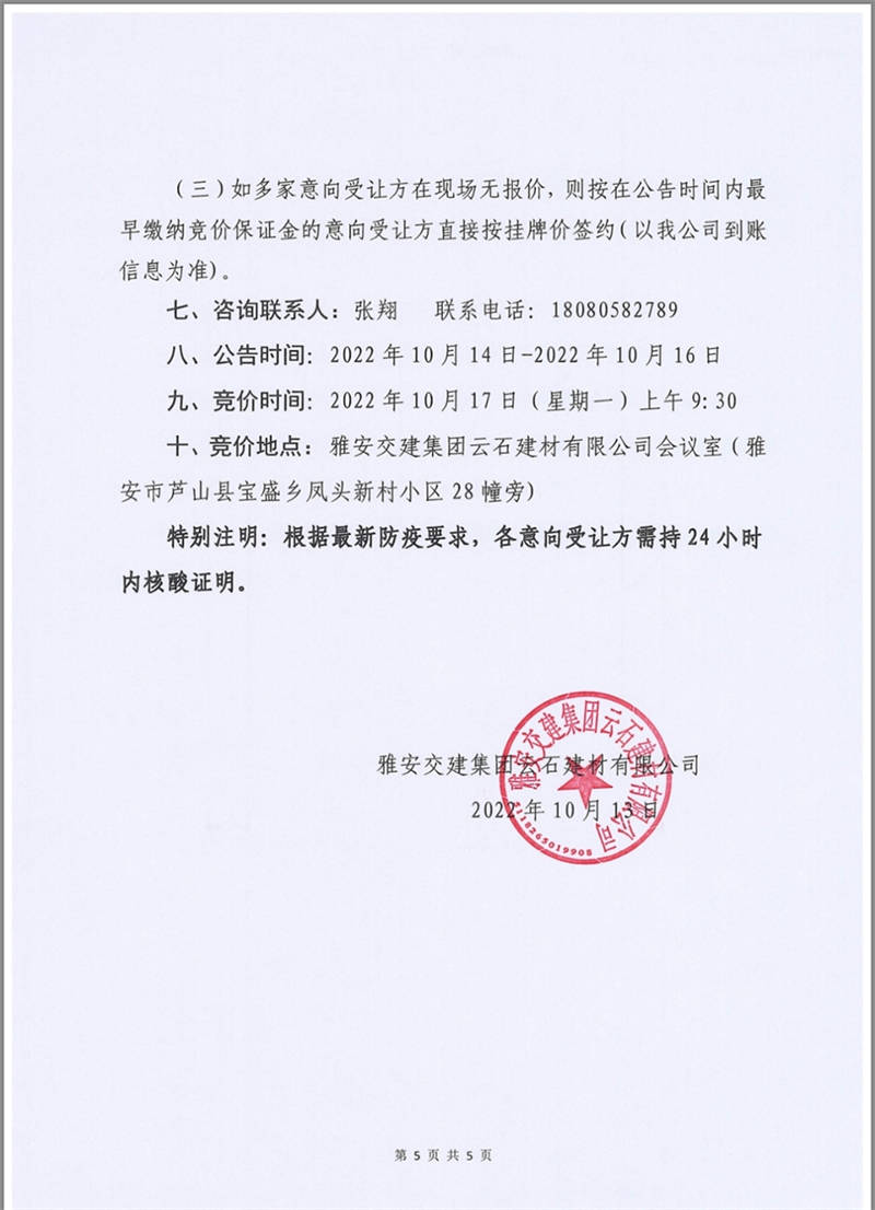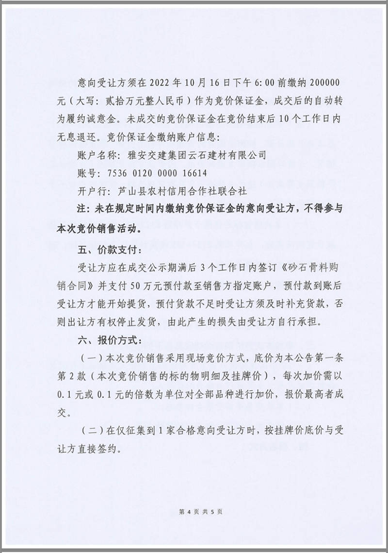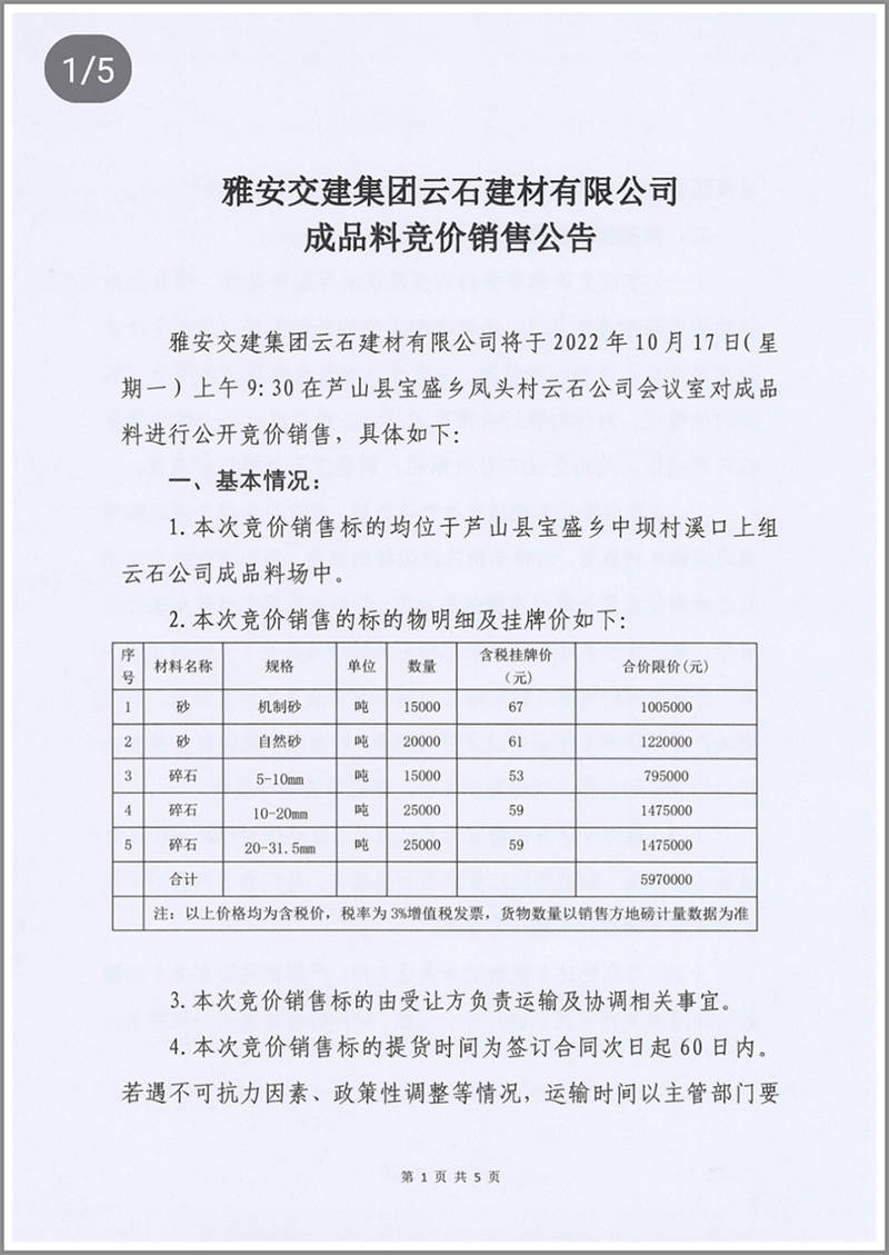 雅安交建集團云石建材公司成品料競價銷售公告10.13