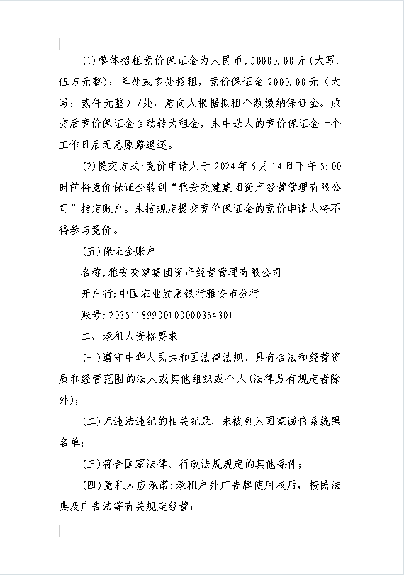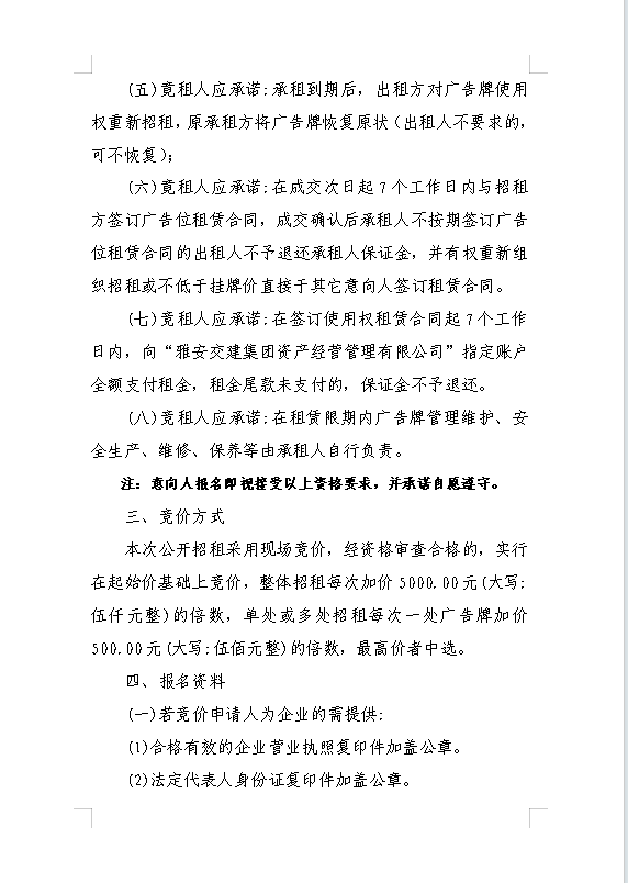 雅安交建集團資產(chǎn)經(jīng)營管理有限公司關于戶外廣告位競價招租的公告附件
