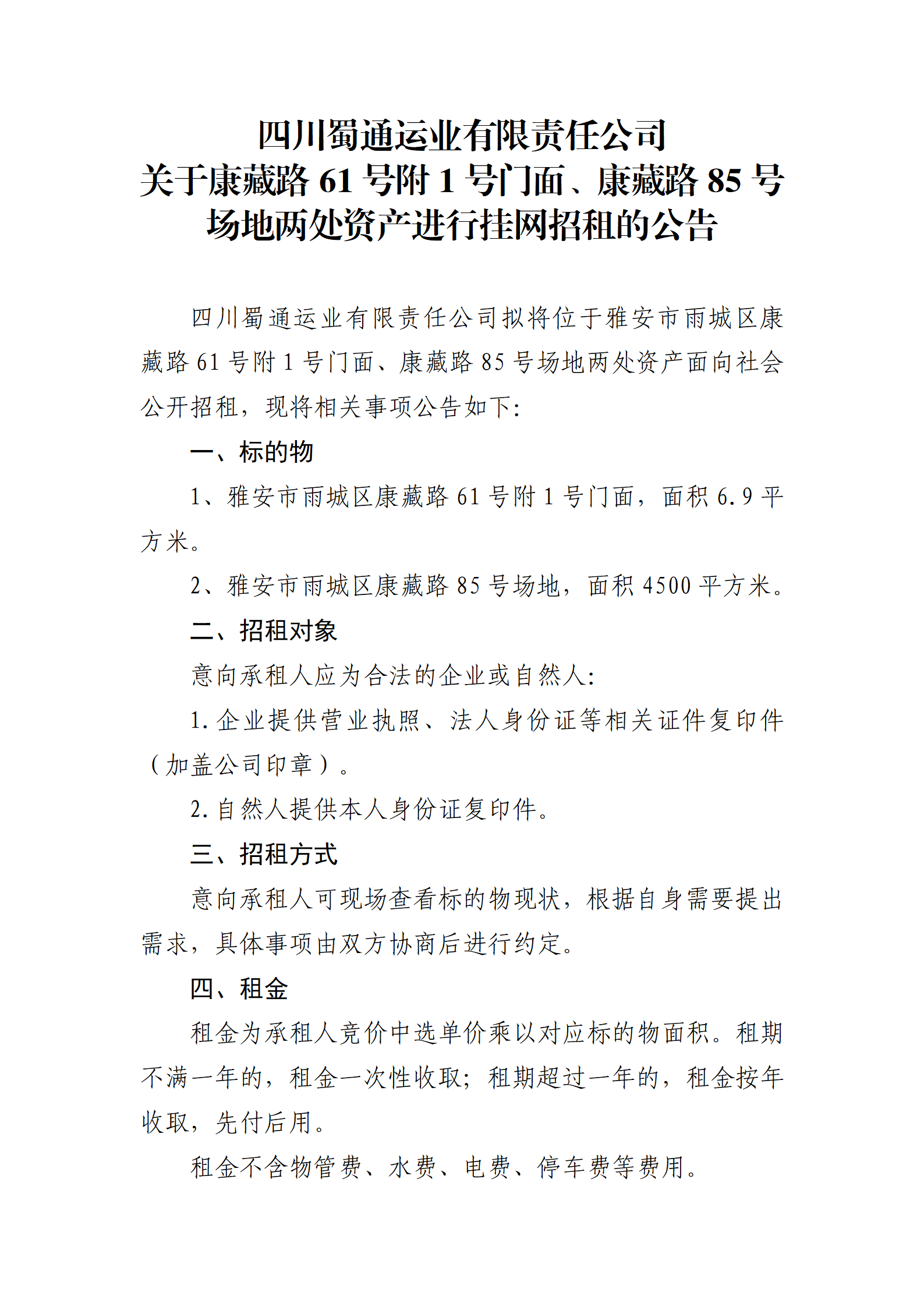ËÄ´¨Êñͨß\(y¨´n)˜I(y¨¨)ÓÐÏÞØŸ(z¨¦)Èι«Ë¾ êP(gu¨¡n)ÓÚ¿µ²ØÂ·61Ì–¸½1Ì–éTÃæ¡¢¿µ²ØÂ·85Ì–ˆöµØƒÉÌŽÙY®a(ch¨£n)ßM(j¨¬n)ÐÐ’ì¾W(w¨£ng)ÕÐ×âµÄ¹«¸æ