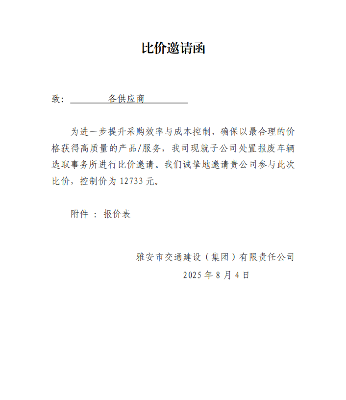關(guān)于選取處置報(bào)廢車輛事務(wù)所的比價(jià)邀請函