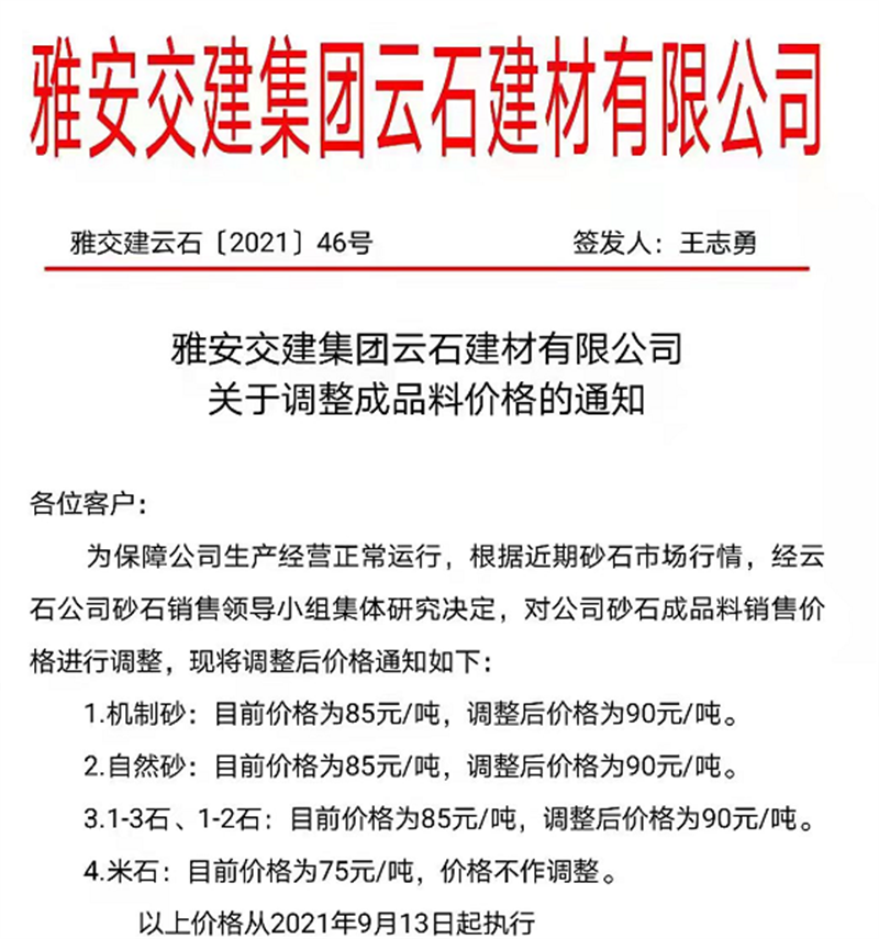 ÑŰ²½»½¨¼¯ˆF(tu¨¢n)ÔÆÊ¯¹«Ë¾êP(gu¨¡n)ÓÚÕ{(di¨¤o)Õû³ÉÆ·ÁÏäNÊÛƒr¸ñµÄ֪ͨ£¨2021.9.13£©
