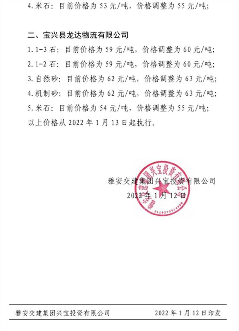 ÑŰ²½»½¨¼¯ˆF(tu¨¢n)µ¤Ê¯¹«Ë¾êP(gu¨¡n)ÓÚÕ{(di¨¤o)Õûɰʯ³ÉÆ·¹ÇÁÏäN(xi¨¡o)ÊÛƒr(ji¨¤)¸ñµÄ֪ͨ£¨2022.1.5£©