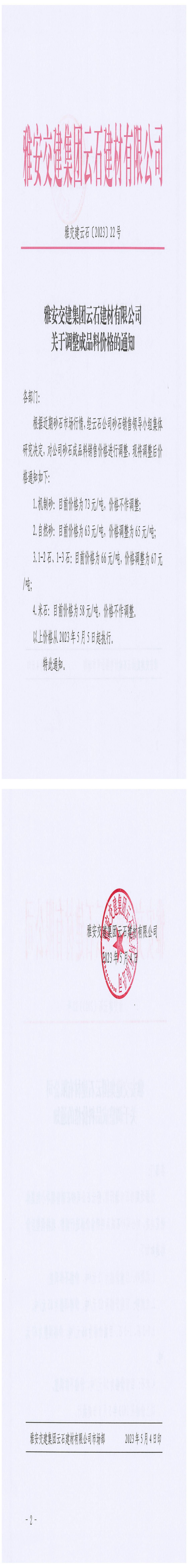 ÑŰ²½»½¨¼¯ˆF(tu¨¢n)ÔÆÊ¯½¨²ÄÓÐÏÞ¹«Ë¾³¬ÒŽ(gu¨©)¸ñʯÁϸ‚ƒräNÊÛ¹«¸æµÚ2´Î£¨2023.5.5£©